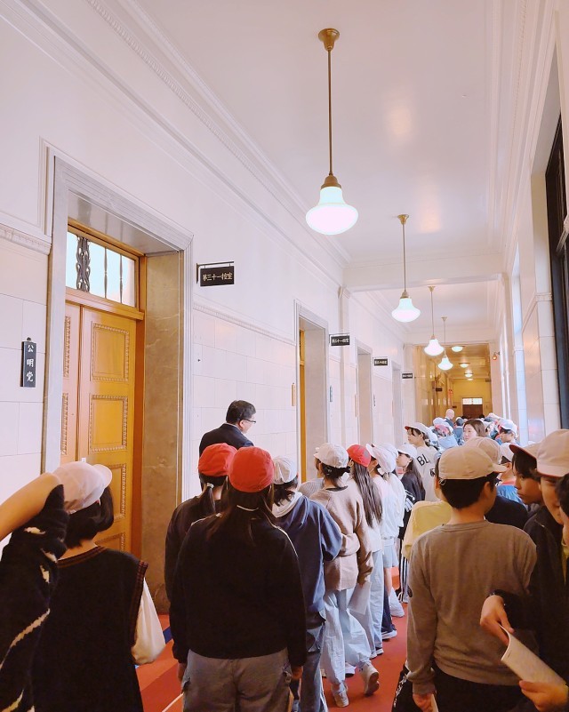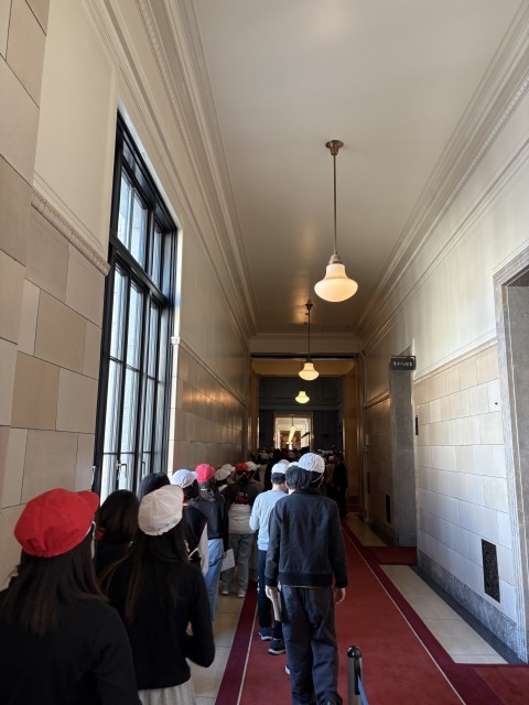 科学技術館のあとは国会議事堂(参議院)を見学しました。テレビで見たことのある建物を目の前にし、「大きい!」と声が上がる場面もありました。