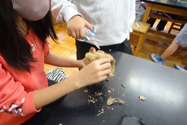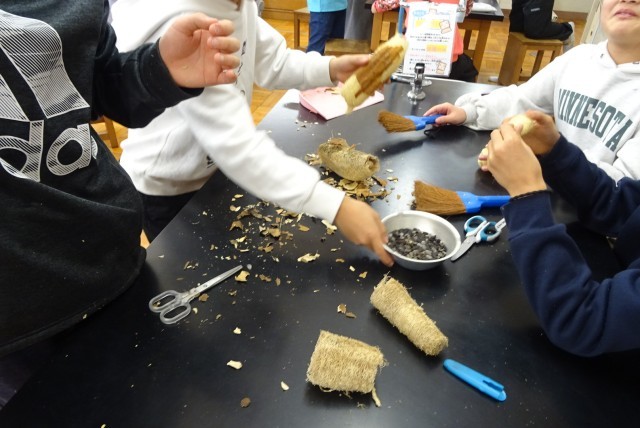 4年生は、理科の学習で春から大切に育ててきたヘチマの観察を続けてきました。夏にはぐんぐんつるを伸ばし、秋には実が大きく育ち、冬を前に熟して枯れ、しっかり乾燥しました。