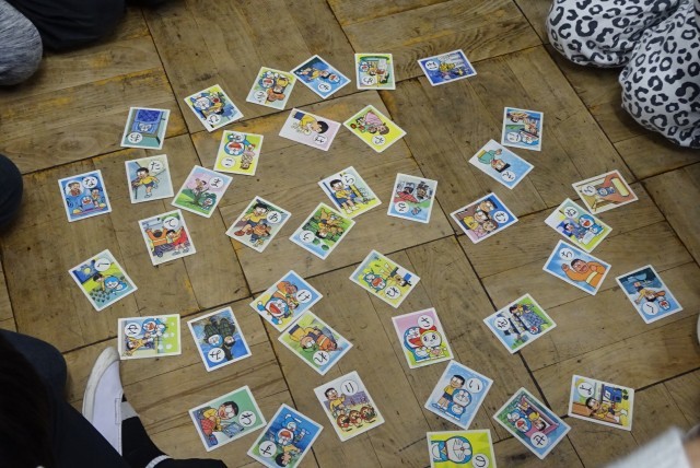 何のカルタかな?と思ってよく見るとドラえもんカルタでした。