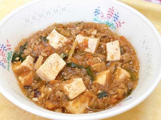 マーボーどうふは、ごはんにのせて丼にしても楽しめる献立。南小のマーボーどうふは給食とは思えないほどかなり本格的な味付けなんですよ。