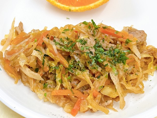 そして、大人気の切干大根のソース炒め。伝統食材の新しい食べ方にも出会える献立です。