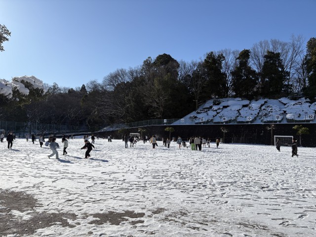 久しぶりに雪が降り、校庭は一面の銀世界になりました。