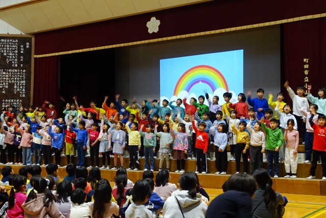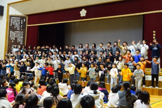 ねらいは「みんなで楽しく歌うこと」。各学年が工夫を凝らし、体育館いっぱいに素晴らしい歌声を響かせました。