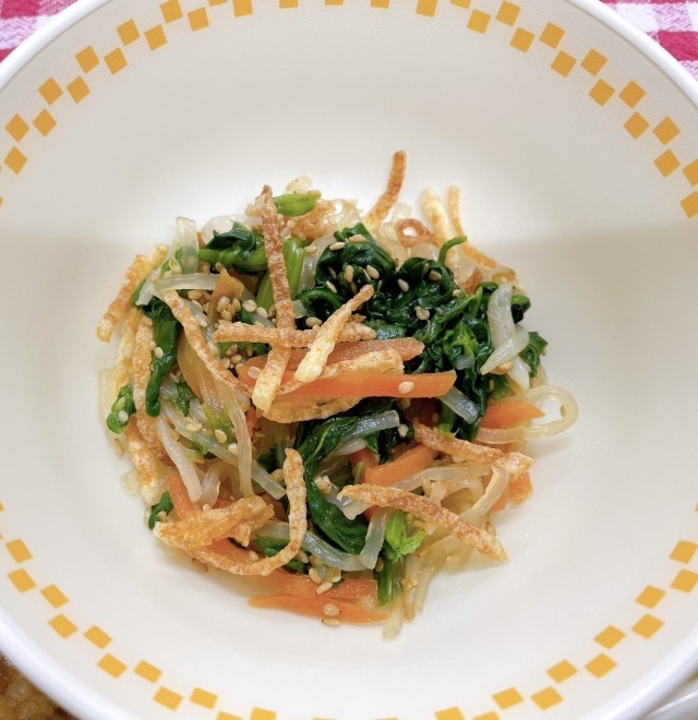 ナムルは野菜をゆでたり蒸したりして、ごま油などで味をつけた韓国の家庭料理です。今日はじゃがいもも入れて食べごたえのあるナムルにしました。