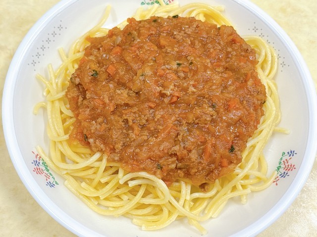 スパゲッティミートソースは、トマトのうま味とお肉のコクが合わさった、子どもたちに人気のメニューです。