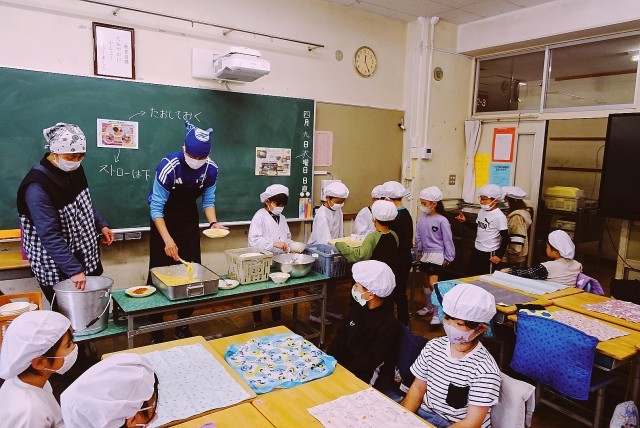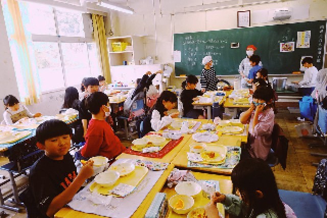 今年から、よりゆったりとよく噛んで食べられるように給食の喫食時間を5分延ばしました。時間いっぱいしっかり食べましょう!