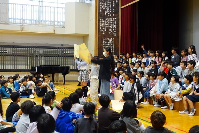 みんなで校歌を歌ったあとは、南小クイズでは大盛り上がり。会場はたくさんの笑顔と拍手に包まれ、1年生をあたたかく迎える気持ちがあふれていました。