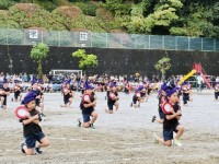教科書を運んでいるたくさんの子どもたち、体育館のいすを運び出してくれている6年生。