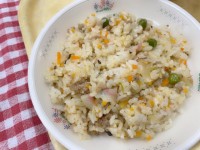 ツナときのこのピラフ、カラフルサラダ、レンズ豆入りABCスープABCスープに入っ...
