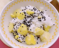 ご飯、シーホー豆腐、焼きししゃも、さつまいもの塩けんぴ風、牛乳さつまいもの塩けん...