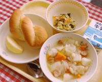 ツイストパン、ポトフ、わかめサラダ、りんご(秋映)、牛乳少しずつ秋めいてきて、じっくりコトコト煮込んだポトフがおいしい季節です。南小のポトフはお肉が柔らかくなるように、お肉だけ朝から煮込んでいるのです...