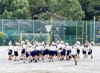鬼役の「漁師」が手を繋いで網のようになって魚役の子どもたちを捕まえる遊びです。魚役の子どもたちは網に捕まらないように駆け抜けます。全校で遊ぶと楽しさも倍増!校庭に歓声や悲鳴が響き渡りました。運動委員会...