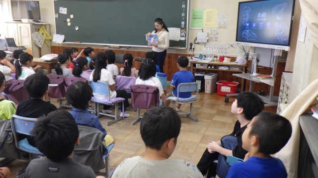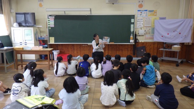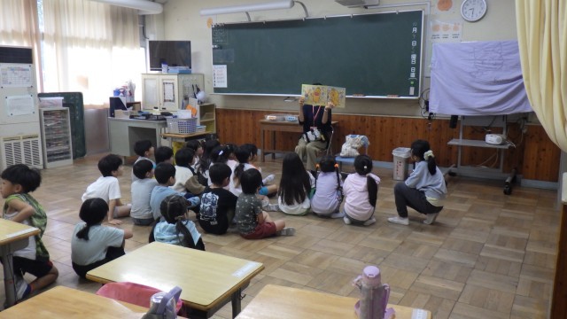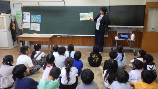 今日は図書ボランティアさんによる朝の読み聞かせの様子です