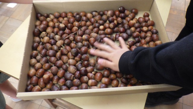 今日は2年生が生活科見学「どんぐりひろい」にいきました。