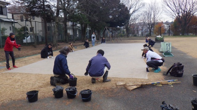 12月20日土曜日に「しばとも」の皆さんに協力を頂き、芝に「絆創膏」を被せました。