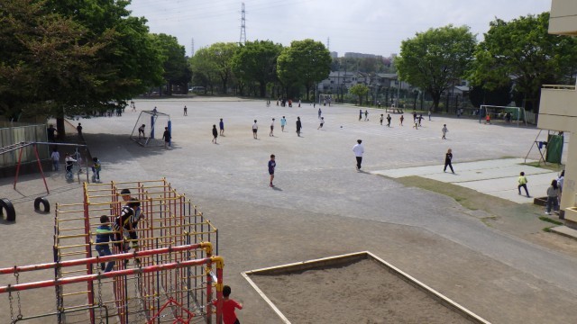ここ1週間でぐんぐん気温が上がっています。写真のように新緑に包まれた校庭が子供たちにも生命力を与えている様な気がしました。新しい先生や友達に触れて気持ち良いスタートが切れるといいですね。