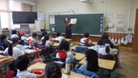 3年生の社会科の学習です。スーパーマーケットの売り場の秘密(気持ちよく買い物することができるための工夫)を探しましょうという活動です。本来ならばスーパーマーケットに実際に行って見学をしたいところではありますが、この2〜3年は見学に行くことができていません。そこで、先生たちが廊下に『スーパーマーケット』を再現しました。写真をたくさん撮ってきて、スーパーマーケットと同じレイアウトに掲示しました。