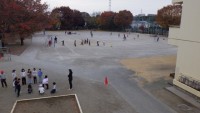 今日の昼休みの様子です。「しばとも」さんを中心にお世話をした芝生の上に、色とりどりの落ち葉が重なって秋の絨毯といったところでしょうか。その上で、子どもたちが体操や鬼ごっこなどをして遊んでいます。