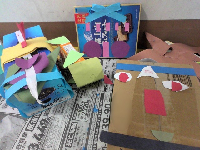 今週は、図工の時間に家庭で用意していただいた箱を使って、ウキウキボックスを作成しました。