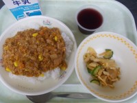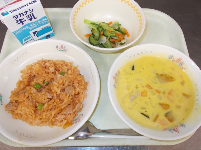 牛乳・チキンライス・フレンチサラダ・かぼちゃのクリームスープ