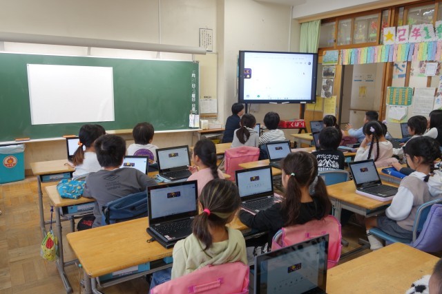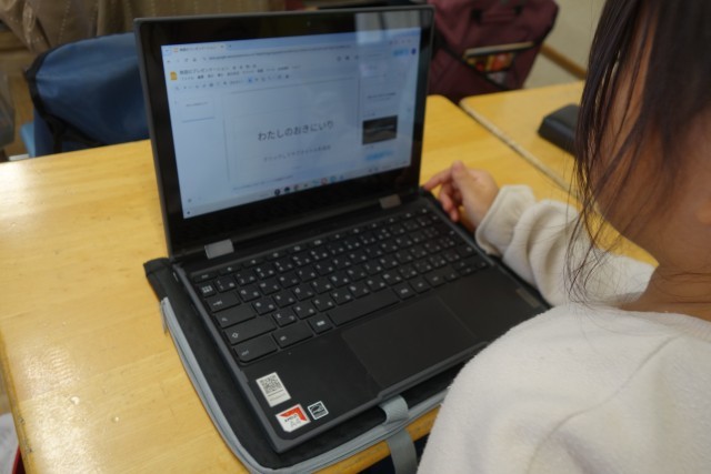 講師の方を招いて、クロムでスライドの作成の仕方を教わりました。文字を入力したり、写真を入れたりすることができるようになりました。真剣に話を聞く様子から意欲をもって取り組んでいることが伝わってきました。