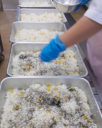 牛乳・栗ご飯・ほっけのみりん焼き・ごまあえ・お月見スープ【十三夜・11/2】