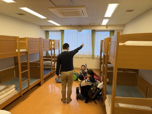 宿舎「高尾の森わくわくビレッジ」に到着しました。少しお疲れ様気味の子どもたちでしたが、開校式を済ませた後は、すぐに各お部屋に移動し、利用方法の説明に耳を傾けていました。2段ベッドのある広いお部屋にワクワクしているようです。荷解きが始まると、再び元気いっぱいの子どもたちでした。