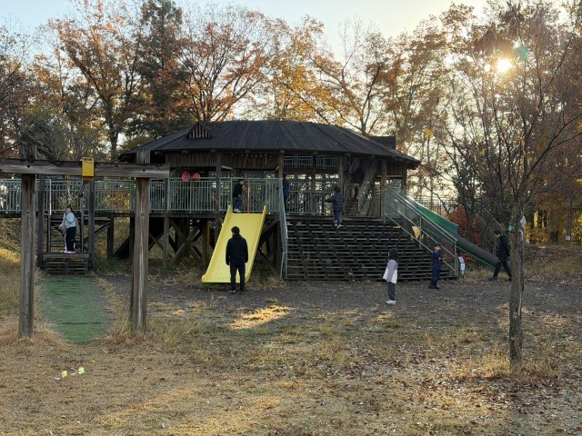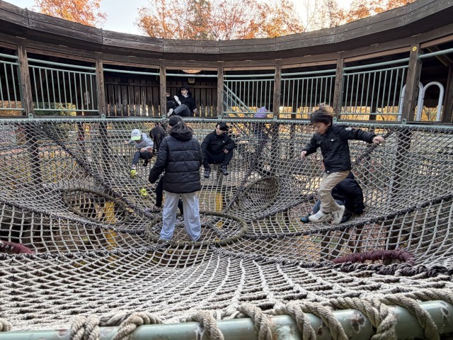 子供たちのチームワークにより、朝の支度や朝の会が予定時刻より早めに済ませることができたため、少しだけ野外遊具で遊びました。高尾の美しい紅葉に包まれ、朝から笑顔と元気いっぱいなすばる学級の仲間たちです。
