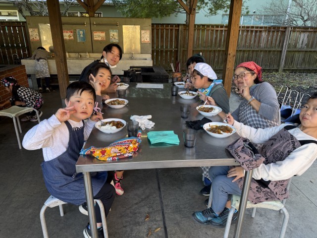 飯盒炊爨のカレー作りは大成功でした!仲間と力を合わせて作ったカレーに、子どもたちは「うまい!」「世界一!」「持って帰りたい!」と大喜びでした。