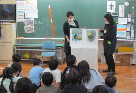 木曽山崎図書館とおはなし玉手箱の方々が来てくださり、おはなし会を開きました。