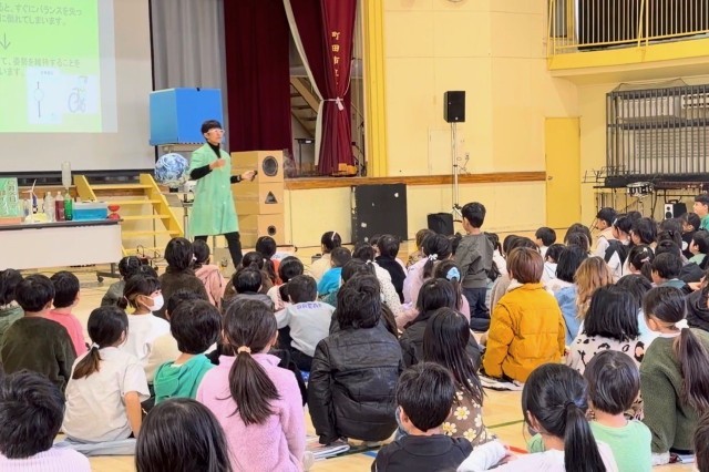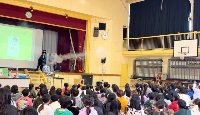 東京都「笑顔と学びの体験活動プロジェクト」企画による、「らんま先生のサイエンス&SDGsエコ実験ショー」が行われました。1~3学年と4~6学年に分かれて実施しました。汚れた水をきれにする実験や、ギネス認定された世界一大きな空気砲の実験など、子どもたちは終始大興奮でした。いつもとは異なる視点からの学びに、参加者全員が笑顔いっぱいになれたひとときでした。