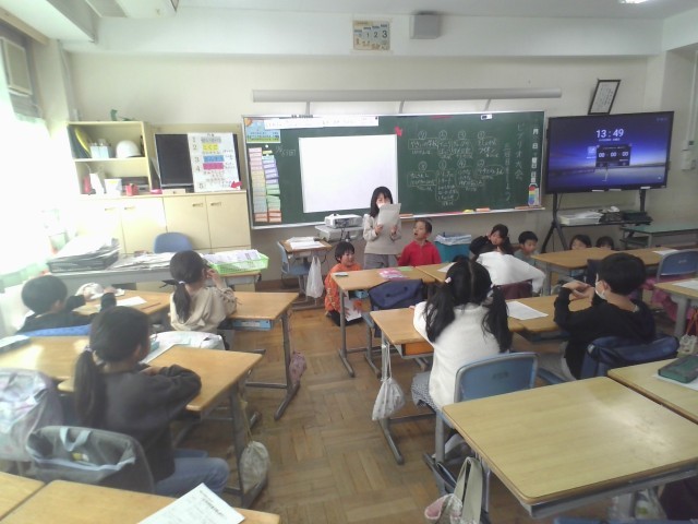 今まで読んだ本の中から、お気に入りの本を紹介する「ビブリオ大会」をしました。班の中から「チャンプ本」を選び、クラス全体での「チャンプ本」を選びます。自分の好きなところや、おすすめの理由をすすんで紹介することができました。