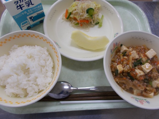 牛乳・ごはん・マーボー豆腐・春雨サラダ・りんご
