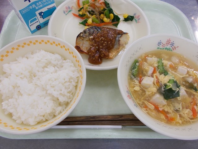 牛乳・ごはん・さばのごまそだれ・からしあえ・かきたま汁