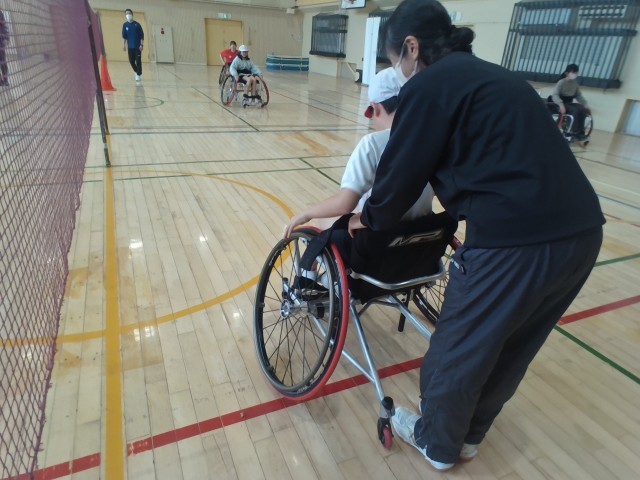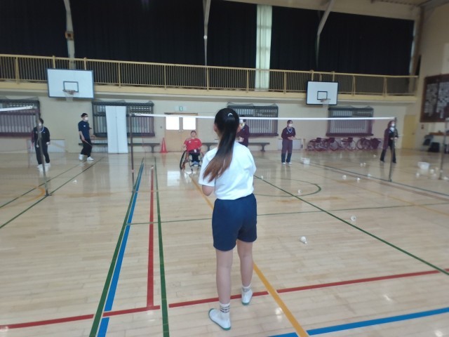パラバトミントンについて学びました。子どもたちは、競技の工夫やスピードのある動きに驚きながら楽しそうに話を聞いていました。
