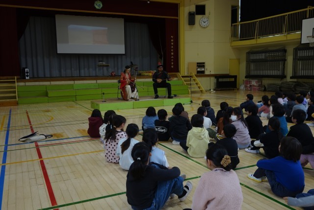先週の2月26日、馬頭琴の演奏を聞きました。馬頭琴奏者のNagisaさん、オリゴさんが来てくださり、モンゴルの映像や写真を背景に、美しい演奏をしてくださいました。国語「スーホの白い馬」の学習内容への理解をより深めることができました。