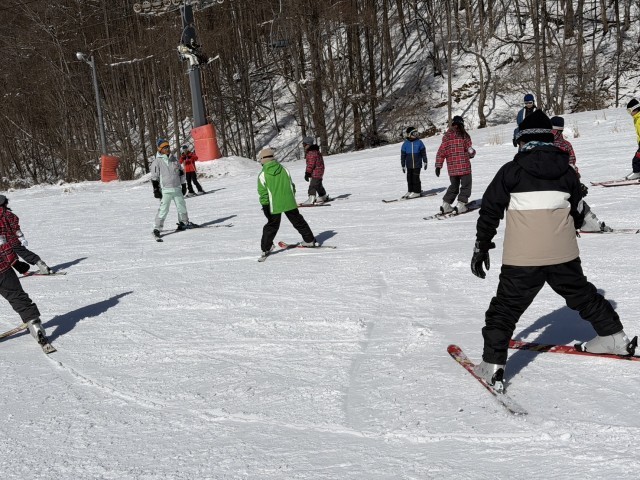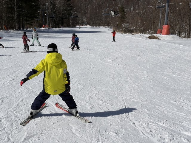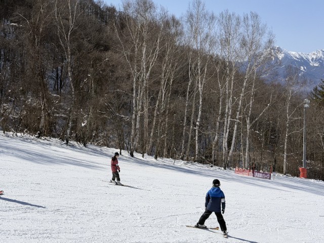 インストラクターのお話をよく聞いてみんな楽しく練習しました。雪山の景色を見ながら滑るのは最高に気持ちいいです。