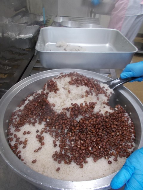 牛乳・お赤飯・金目鯛の塩こうじ焼き・いそかあえ・お祝いすまし汁