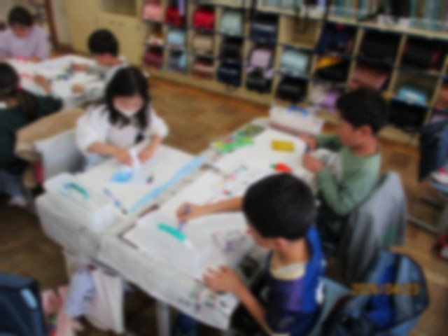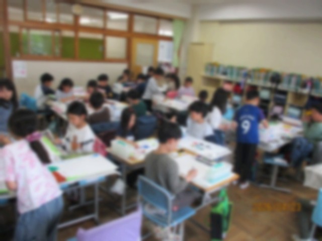 図工の学習で、絵の具を使って自由に絵をかきました。