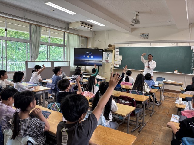 4年生になって初めて、ALTの先生をお迎えして外国語活動の授業を行いました。
