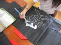 国語「くじらぐも」を毎日楽しみながら読んでいます。子供たちから、「くじらぐもに乗ってみたい!」と発言があったので、みんなで乗ることにしました!ふわふわの雲はお花紙をくしゃっとして作りました。雲に乗る自分は、楽しんでいる動きをイメージして、体の動きを考えながら描き上げました。