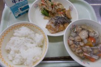 今日の給食は、さんまご飯、菊花あえ、豆乳入り味噌汁、ぶどう、牛乳でした。さんまご飯は、揚げたさんまが甘辛く味付けされて入っていました。豆乳の入ったお味噌汁と一緒にいただくと、最高に美味しかったです。和え物には、黄色い菊の花が入っていました。9月9日は重陽の節句といって、健康や長寿を願う日でした。食用菊は、寿命を延ばす働きもあると考えられていたそうです。今日は秋を感じる献立でした。手のこんだメニューをありがとうございます。