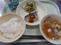 今日の給食は、中華丼・春雨サラダ・りんご・牛乳でした。新米の美味しい季節になりました。給食では、11月から新米を使っています。学校で使っている品種は、埼玉県産の「彩のきずな」という品種です。色々な料理によく合う、甘みと旨味のバランスがとれたお米です。中華丼は、豚肉の他、しょうが・玉ねぎ・白菜など野菜がたくさん入っていました。干ししいたけの旨味も加わって最高でした。春雨サラダはご飯のおかずにもなる味付けで、あっという間に食べてしまいました。今日もごちそうさまでした。