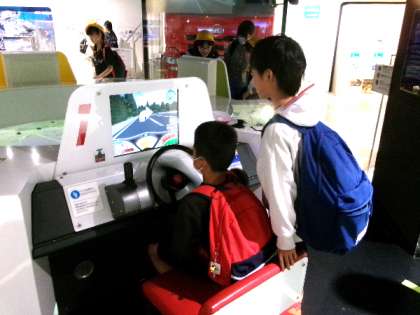 人気のコーナーには子供たちが集まっていました。互いに応援しながら、順番待ちをしています。