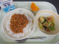 牛乳・ごはん・白身魚の和風マリネ・みそドレッシングサラダ・ビーフンスープ