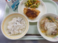 牛乳・豚丼・パリパリれんこんサラダ・りんご