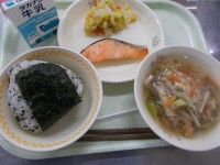 牛乳・ゆかりごはん・卵焼き・野菜の昆布あえ・豆乳入りみそ汁