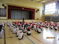 兄弟学級でのソーラン節合同練習の様子です。4年生を手本に、動きを1つ1つ確かめな...