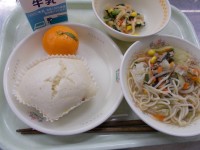 牛乳・豚キムチ焼きそば・青のりポテトビーンズ・みかん