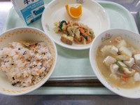 牛乳・鮭わかめごはん・生揚げ入りごまサラダ・豚汁・はれひめ